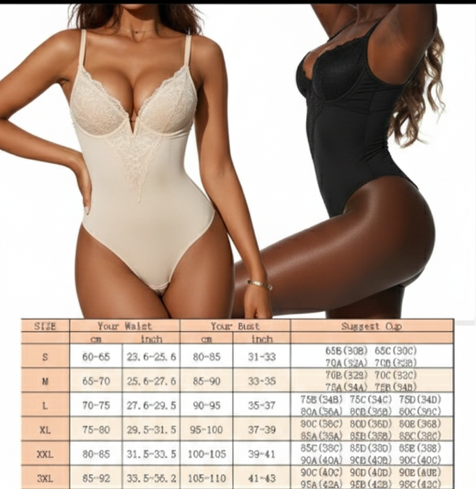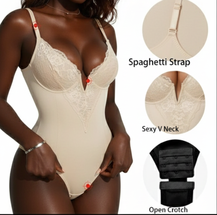 Discover our adjustable lace bodysuit—featuring a flattering V neck, spaghetti straps, and back closure for a custom fit. This body shaper thong offers tummy control and seamless shaping, making it the perfect blend of elegance, comfort, and support for everyday wear.