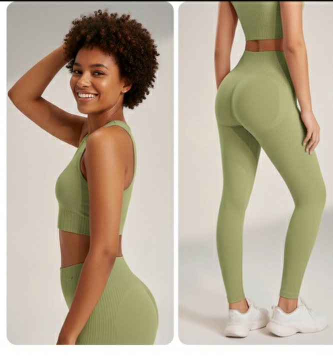 The Power Set: A high-neck racerback crop top paired with sculpting high-waist leggings.